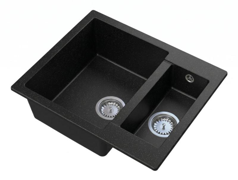 Graniteland Adda Lavello in granito nero look pietra blu 1.5 Vasca a incasso 600x495mm con tappo in acciaio inox 1208970619