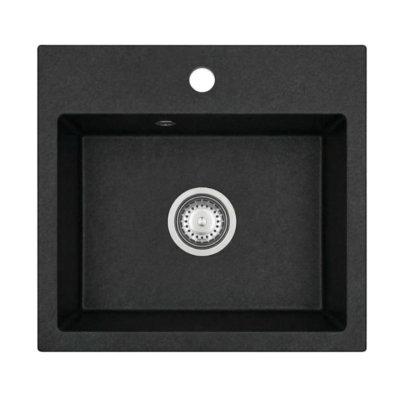 Graniteland Lavello in Granito Nero 45x42 cm Nero Da Appoggio con Foro per Rubinetto e Tappo in Acciaio Inox 1208969985