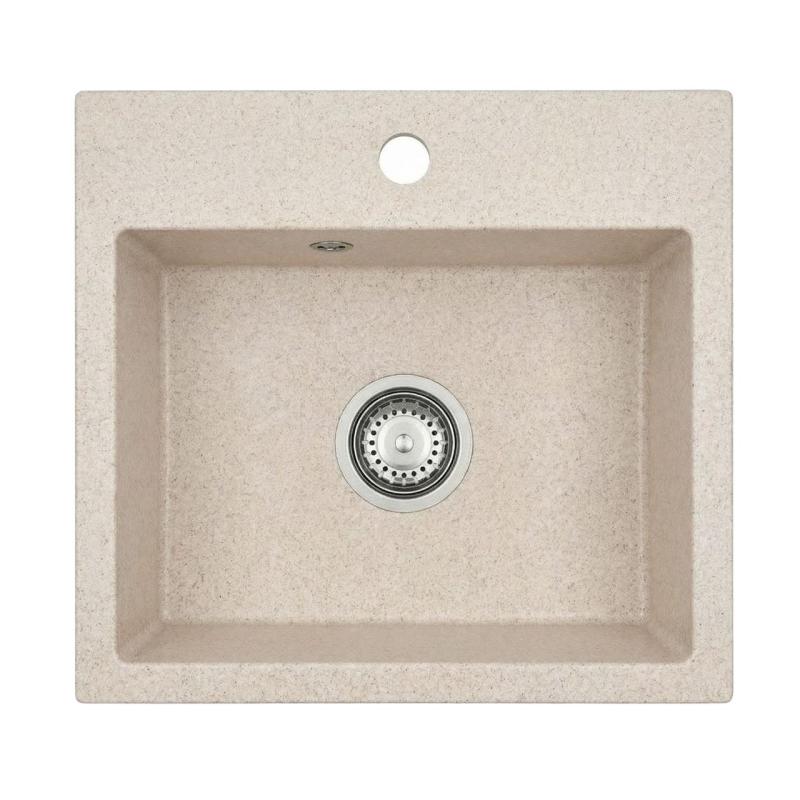 Graniteland Nera Lavabo in granito 45x42 cm Beige Top con bancone per rubinetto e tappo in acciaio inossidabile 1208971434