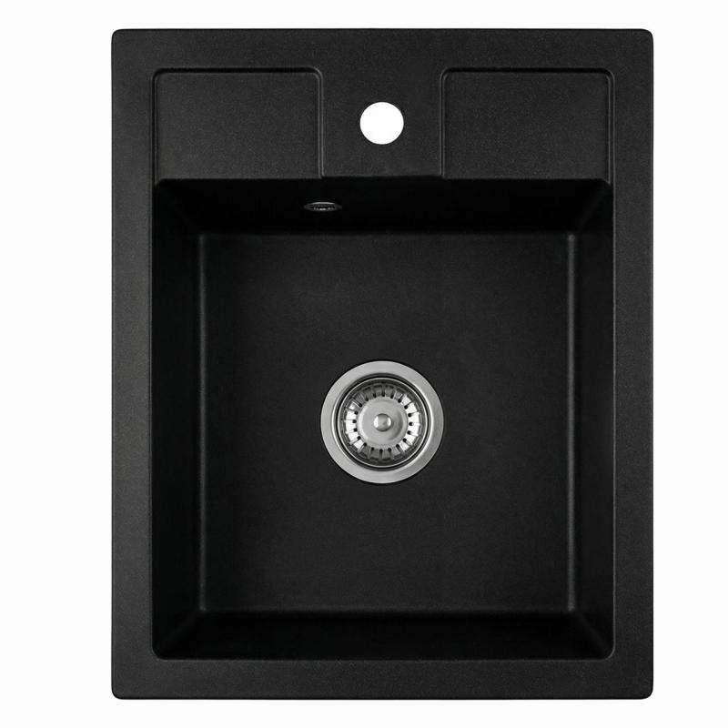 Graniteland Prest Lavello in granito nero Tapwing con foro del rubinetto da incasso 400x500mm con tappo in acciaio inossidabile 1208971421