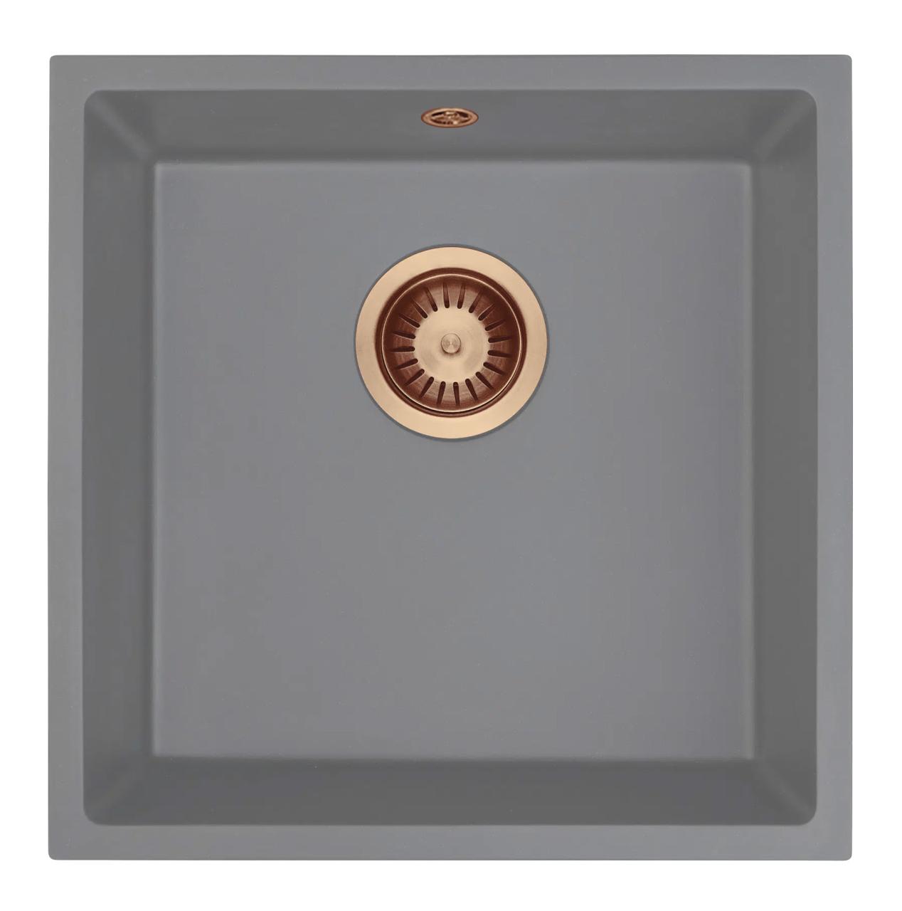GraniteMy Universal Lavabo in Granito Grigio 40x40 cm da Incasso, Sottotop e Filotop con Tappo di Rame 1208970753