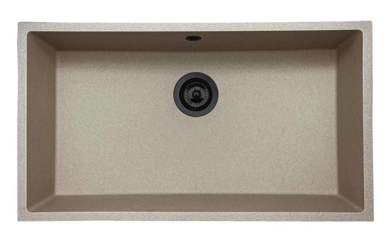 GraniteMy Universal lavello in granito sabbia beige 74x40 cm montaggio a incasso, sottopiano e filotop con tappo nero 1208968020
