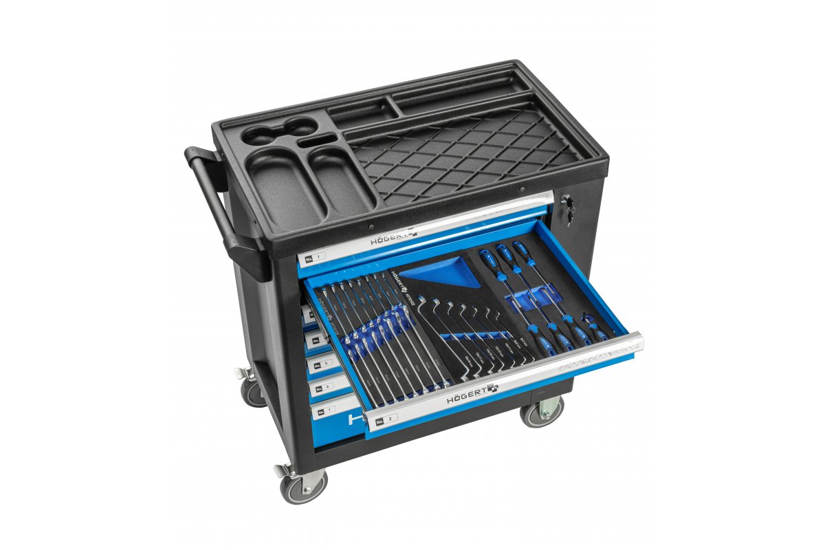 Hoegert Cassettiera porta attrezzi a 7 cassetti con una porta laterale con accessori 544 pezzi. 1208962010