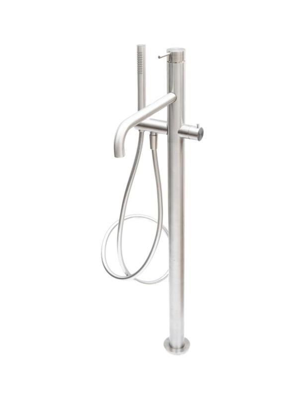 Con un'altezza di 885 mm e un beccuccio di 250 mm, questo rubinetto da bagno freestanding offre un comfort ottimale durante il riempimento della vasca. La doccetta integrata con supporto fisso e dispositivo di commutazione rende il rubinetto ancora più pratico per il risciacquo o la pulizia. Il rubinetto viene montato a pavimento ed è progettato appositamente per vasche da bagno freestanding.