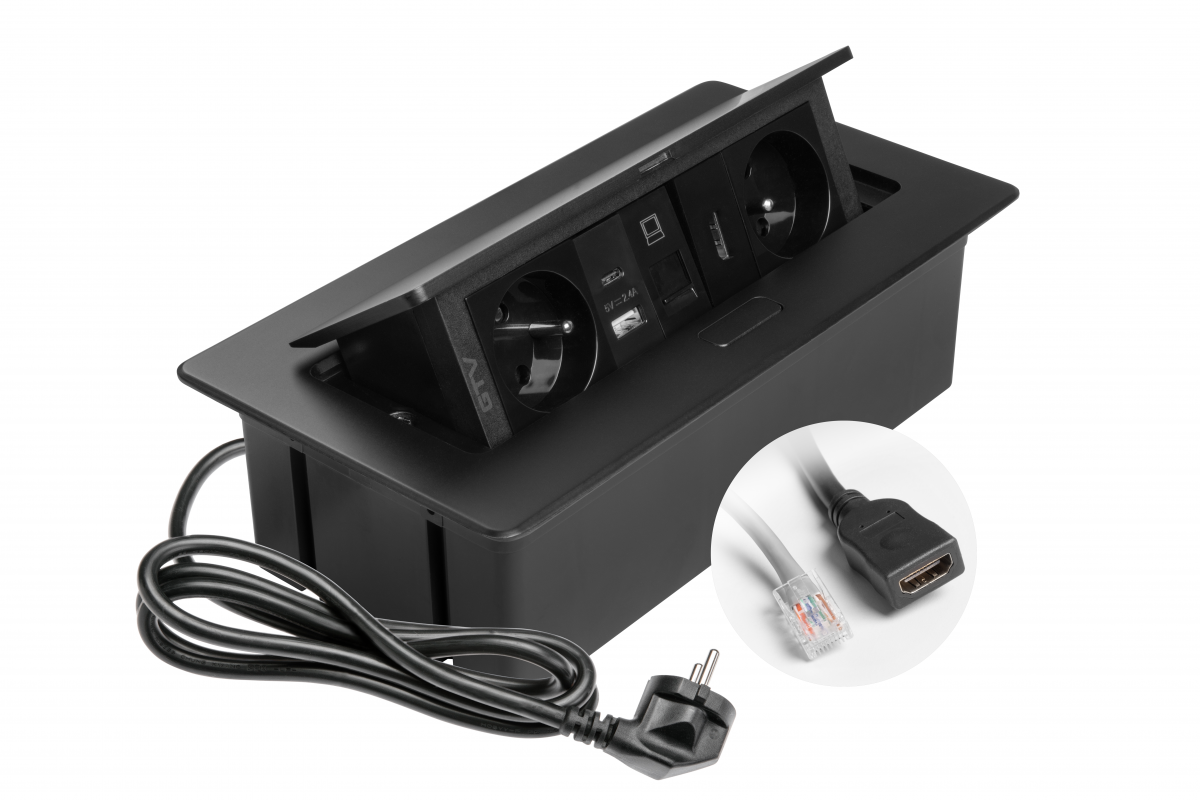 Prese funzionali ed ergonomiche montate nel piano di lavoro. Rendono più facile mantenere l'ordine dopo il lavoro. Le prese Multisoft, rifinite esteticamente, sono anche un elemento di scrivania, tavolo da conferenza o piano cucina. Sono dotate di coperchi eleganti e sottili per proteggere da schizzi e sporco. Le prese Multisoft sono un complemento alla famiglia di prese SOFT. Si distinguono per la loro multifunzionalità grazie ai diversi porti.