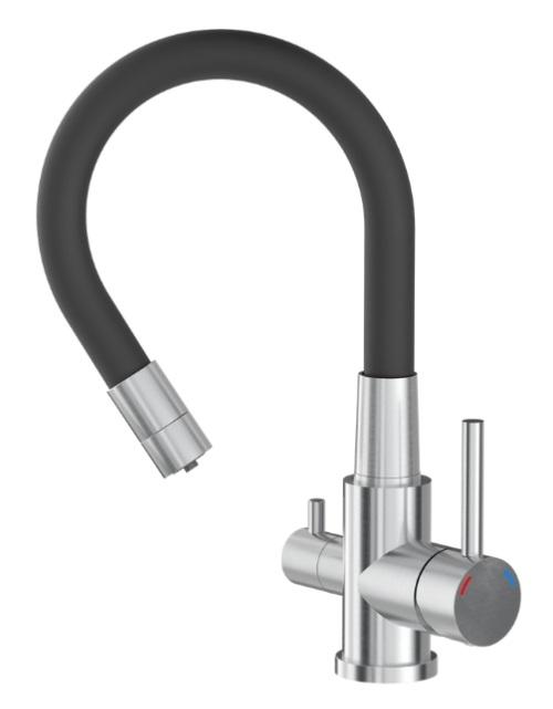 Rubinetto da cucina Selene Quadri in acciaio inossidabile a 3 vie con bocca flessibile e connessione aggiuntiva per acqua filtrata 1208971407