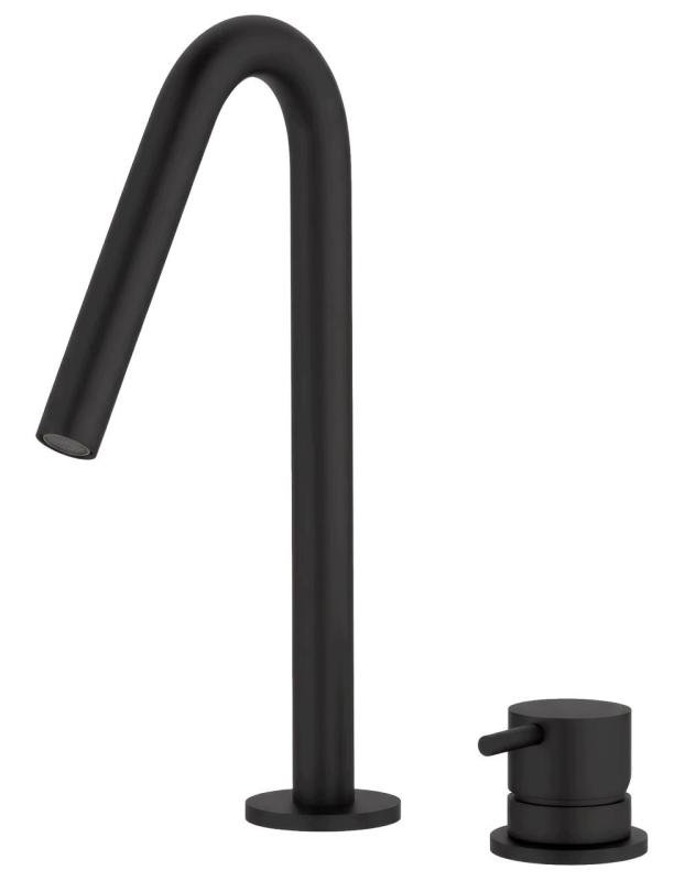 Waterevolution Flow Miscelatore per lavabo a 2 fori nero opaco con beccuccio piccolo a V da 120 mm T1121VPR