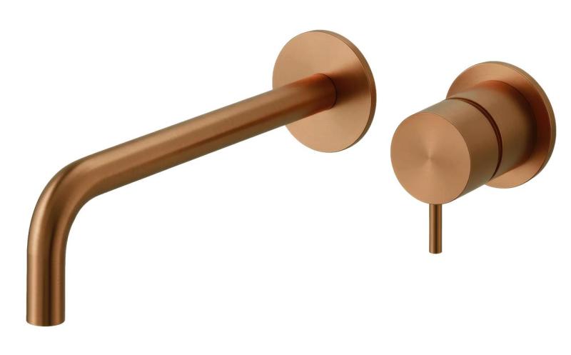 Aggiungi un tocco di calore e lusso al tuo bagno con questa elegante rubinetteria da incasso per lavabo in rame spazzolato PVD. Il bocchello compatto da 21 cm è perfetto per lavabi e lavandini di dimensioni ridotte, mentre il design minimalista della serie Flow garantisce un look pulito e moderno. La parte tecnica è completamente nascosta nella parete, lasciando visibili solo le raffinate maniglie e il beccuccio. Questo modello viene fornito come set completo, compreso il kit di incasso, in modo da essere subito pronti per l'installazione.